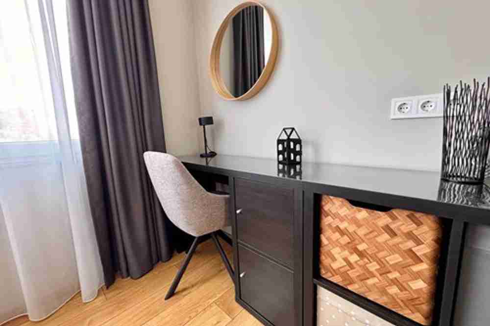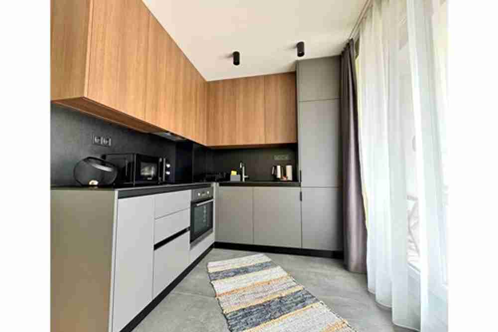 Апартаментът разполага с луксозно обзавеждане, заложено е на дървесен стил и има функционално разпределение със зониране на хола - дневна, кухня и трапезария, които имат изцяло южно изложение и са светли и приветливи през всеки сезон. Също така разполага със спалня, баня с тоалетна и южна тераса с просторна гледка към един от седемте хълма на Пловдив!