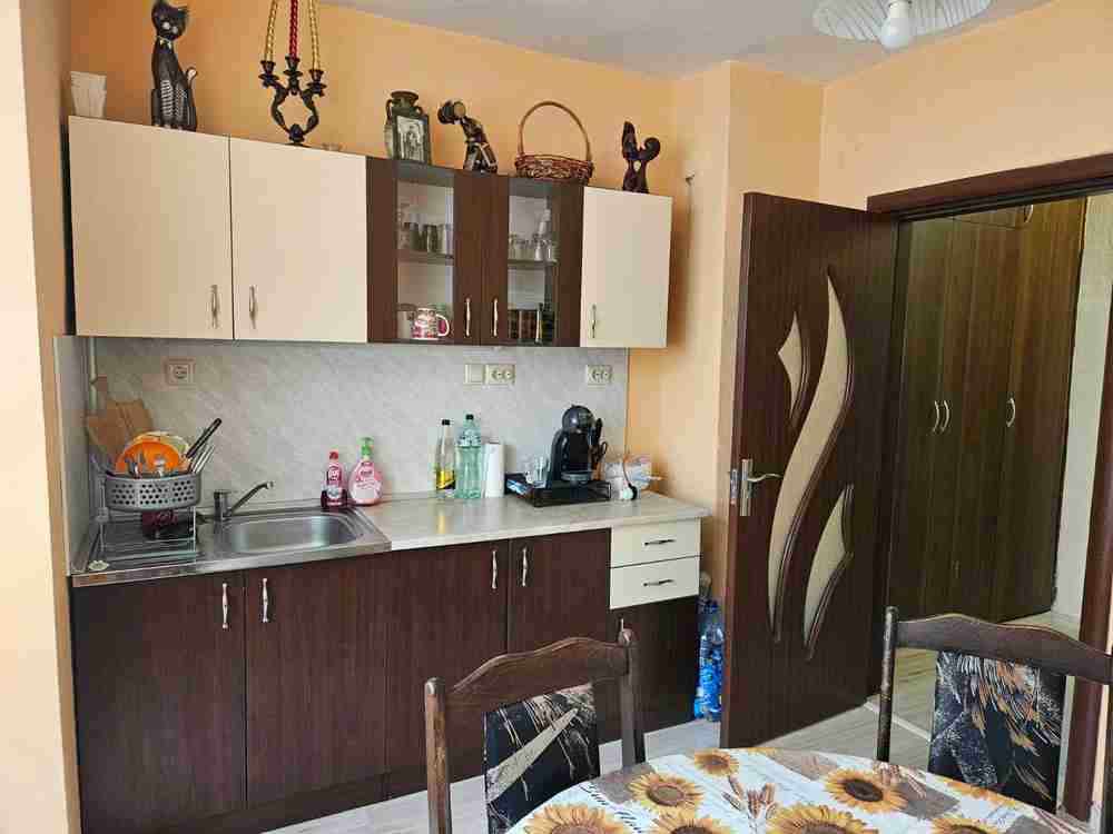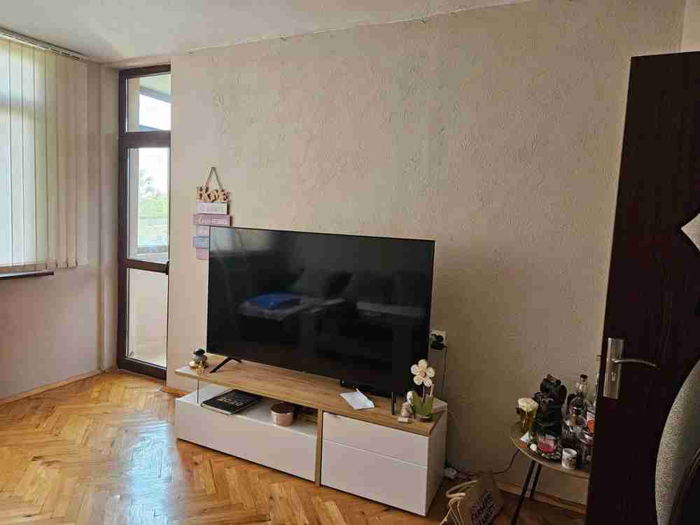 Жилището е с две, големи остъклени и чисти тераси. Третата тераса е пригодена за кухненски бокс и свързана с трапезарията. Същото разполага с една голяма и една по-малка спалня, голям хол, трапезария и кухненски бокс. От голямата спалня се излиза на остъклена тераса и другата тераса е преходна между хола и по-малката спалня. Дограмата е сменена на целият апартамент, както и подовата настилка. Блокът е чист, тих и спокоен.