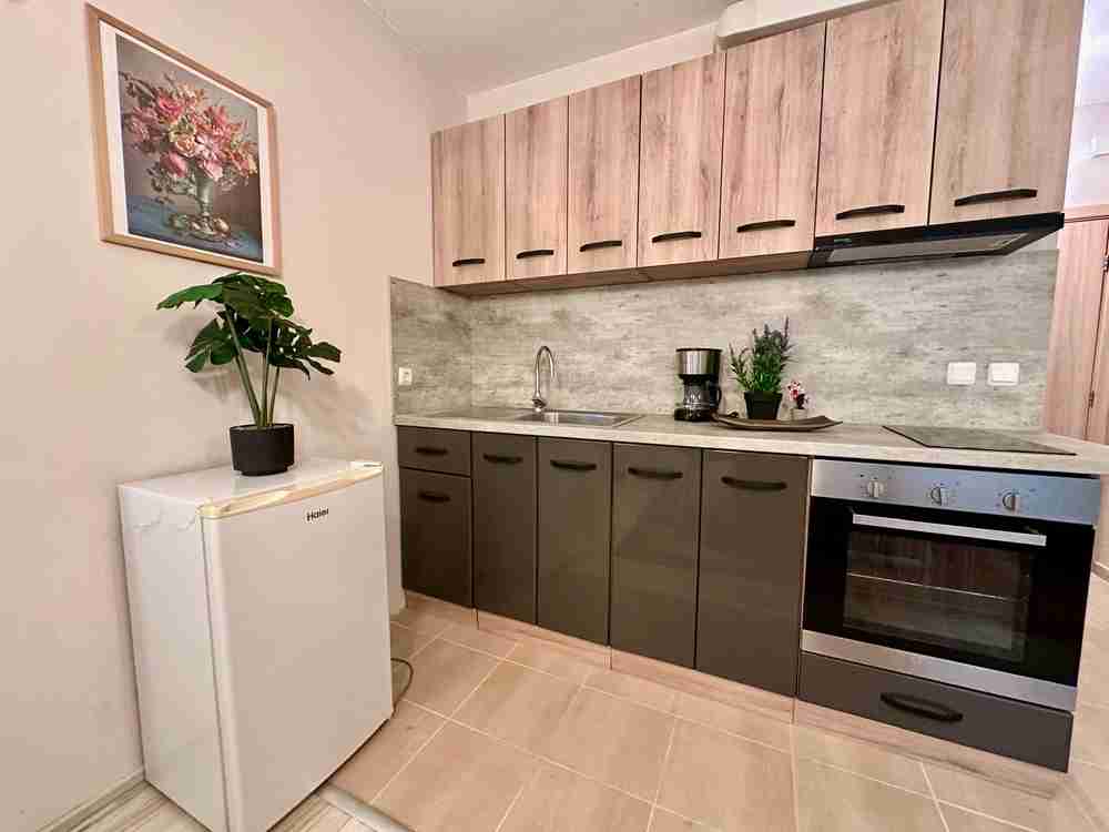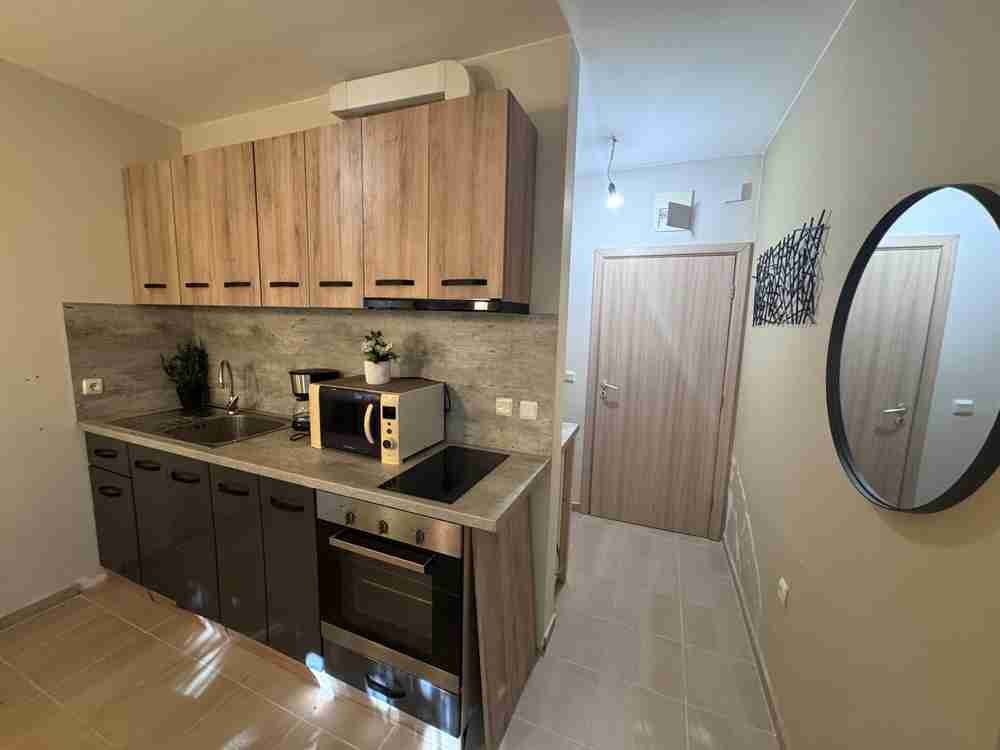 Планировка: гостиная с кухней и зоной отдыха, уютная спальня со всей необходимой мебелью, терраса и ванная комната с туалетом. Полностью меблирована - готова к заселению.