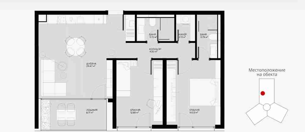 | Вид недвижимости | Трехкомнатная квартира |